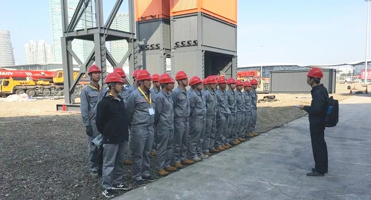 展品安裝團(tuán)隊(duì)早會(huì)合影圖