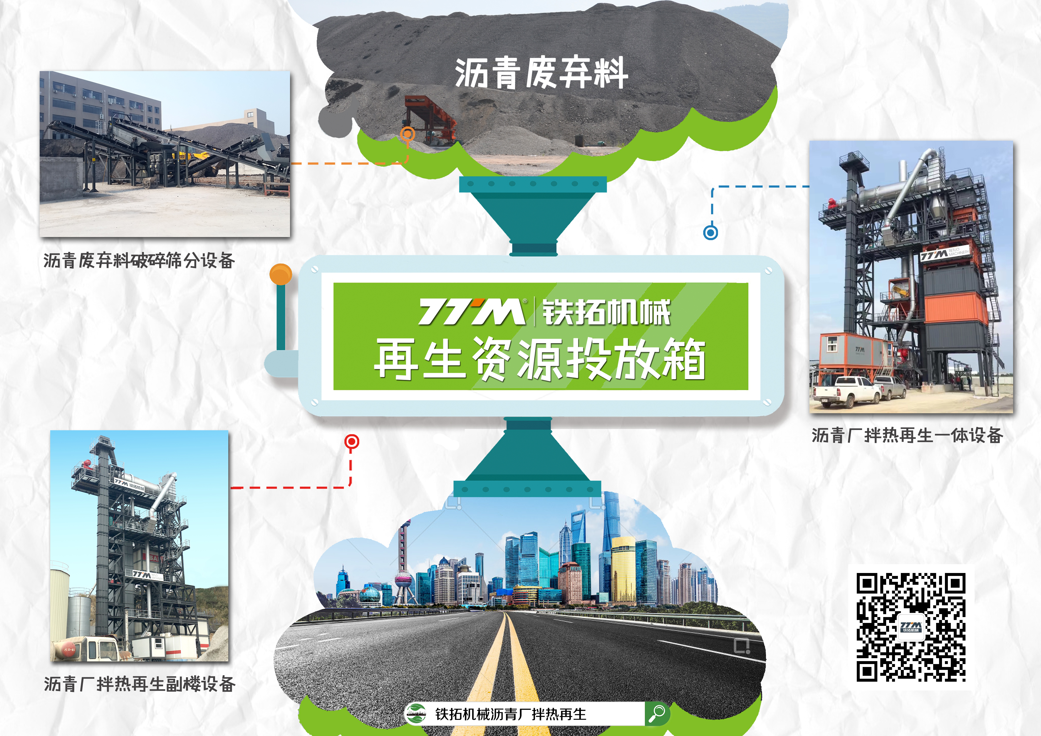 鐵拓機(jī)械作為中國瀝青混合料攪拌/再生設(shè)備引領(lǐng)企業(yè),不僅僅是在世界環(huán)境日期間,任何時候都把保護(hù)生態(tài)環(huán)境放在第一位。 在設(shè)備研發(fā)初期,鐵拓機(jī)械設(shè)備研發(fā)工程師結(jié)合中國國情,圍繞瀝青廢棄料循環(huán)利用、大氣污染、噪音污染以及改善設(shè)備使用者現(xiàn)場工作環(huán)境等諸多問題,進(jìn)行研發(fā)設(shè)計和制造,不同用途的環(huán)保技術(shù)和設(shè)備就此應(yīng)運(yùn)而生,完美解決諸多環(huán)保問題。