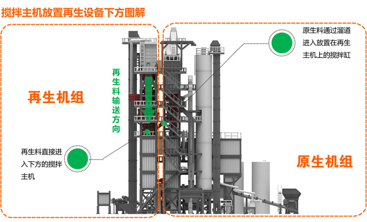 5.攪拌主機設(shè)置在再生設(shè)備正下方,使高溫RAP可直投進入攪拌主機中。此項技術(shù)為鐵拓機械2010年專利技術(shù)(鐵拓機械專利號:ZL 2010 2 0119177.0)。經(jīng)過鐵拓機械工程師近十年來的實際應(yīng)用驗證,此項技術(shù)完全解決了高摻配比狀態(tài)下高溫再生料黏附輸送設(shè)備和投料速度慢的問題。為行業(yè)共性難題提供了完美的解決方案。
